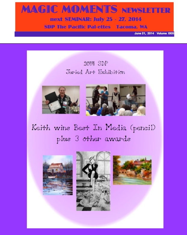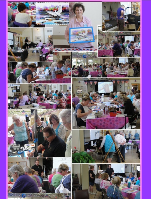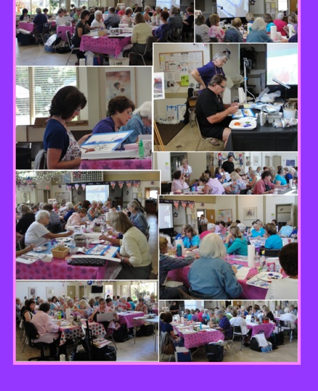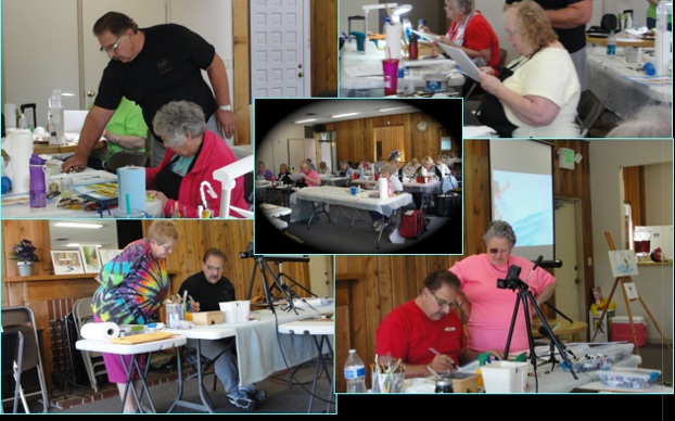 “We had a full house for our first mini-seminar of the year, with Keith Sluder. You could have heard a pin drop in the room for much of the day as Keith guided us through his techniques to achieve a colorful and amazing watercolor look to our pieces., It was surprising to see what he could do with just his “dab and pull” using a wet paper towel. Many of us were working out of our comfort zones, but Keith was patient and very encouraging with us. I think our finished pieces and smiling faces spoke for themselves. Thank you, Keith and Barbara for a wonderful class.”