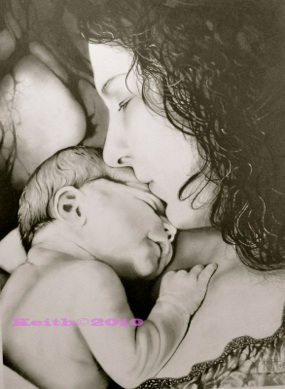 Pencil drawing of my daughter-in-law Amy & granddaughter Feyona Pearl